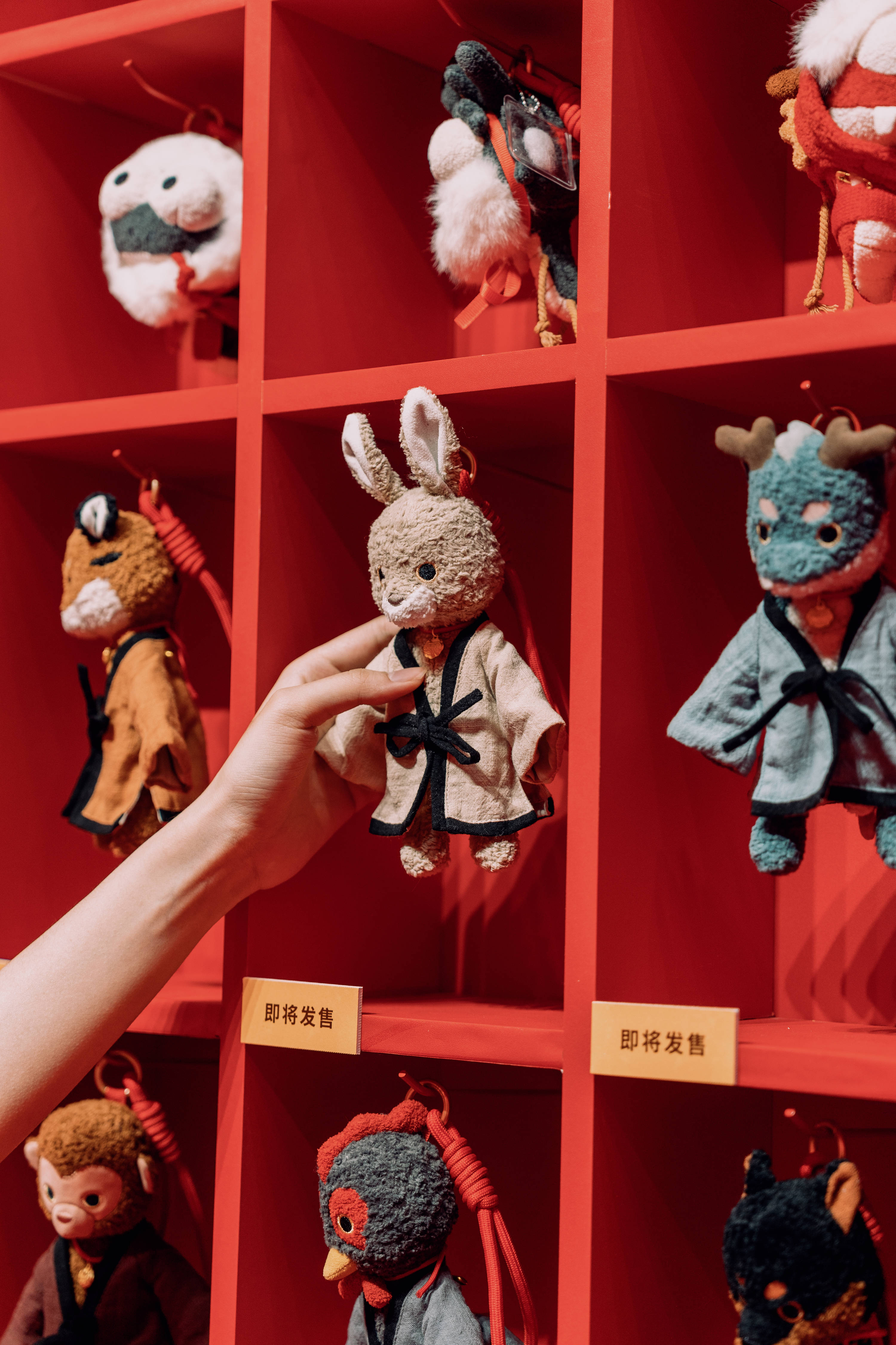 中国祥瑞区里好运感扑面而来,财神系列、祥瑞系列、生肖玩偶......都寄托着普罗大众对美好生活的朴素期盼,吉祥图腾、意向不再是俗不可耐的老文化,而是有设计感又可爱轻巧的随行护身好物。