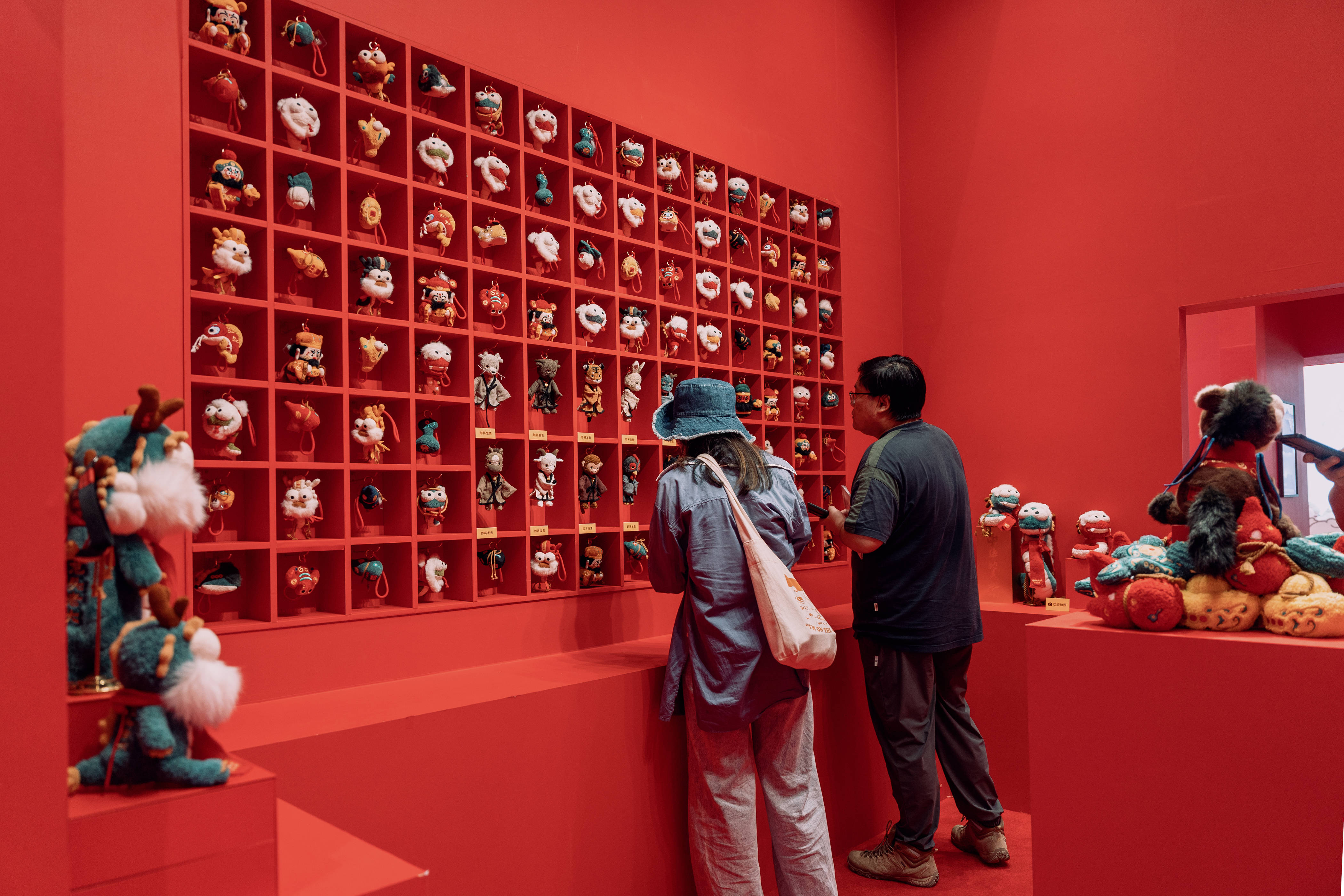 内场5大产品区域,几乎呈现了问童子15年来所有的经典,作为以中国文化为灵感的玩偶品牌,问童子似乎始终没有瓶颈,总能从巨大的传统文化素材池中不断挖掘,找到新的灵感切口,并且与时代相契,将大文化化作触手可及的小符号。